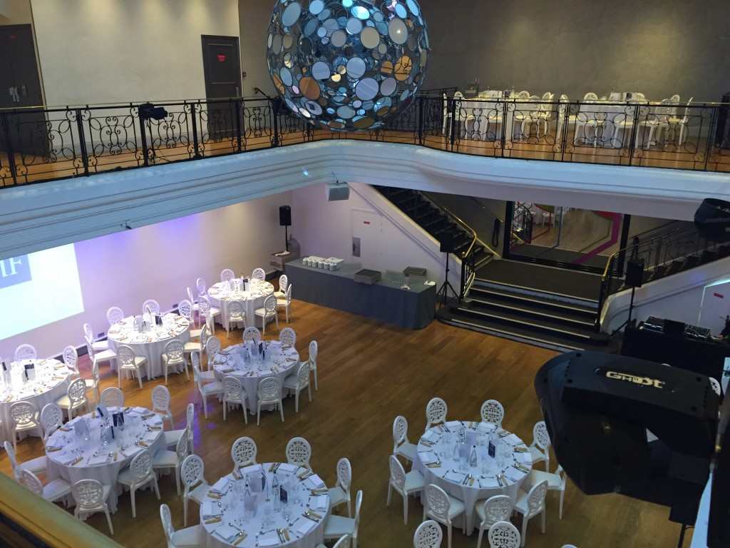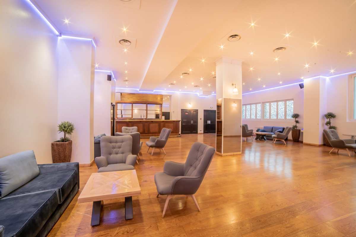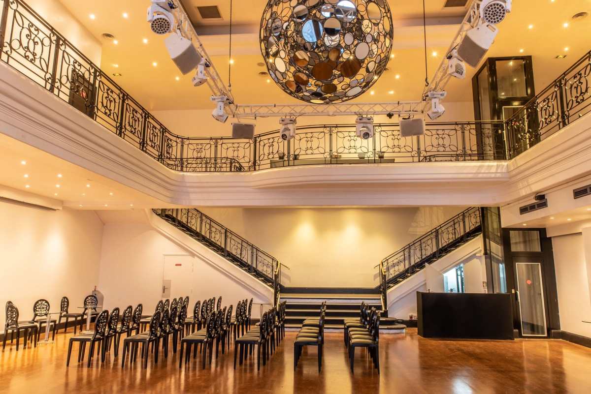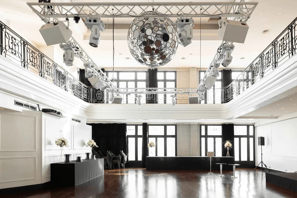 Cette salle en plein cœur de Paris se démarque par son design unique avec une grande boule à facettes suspendue, apportant une touche spectaculaire à vos soirées dansantes et événements festifs.