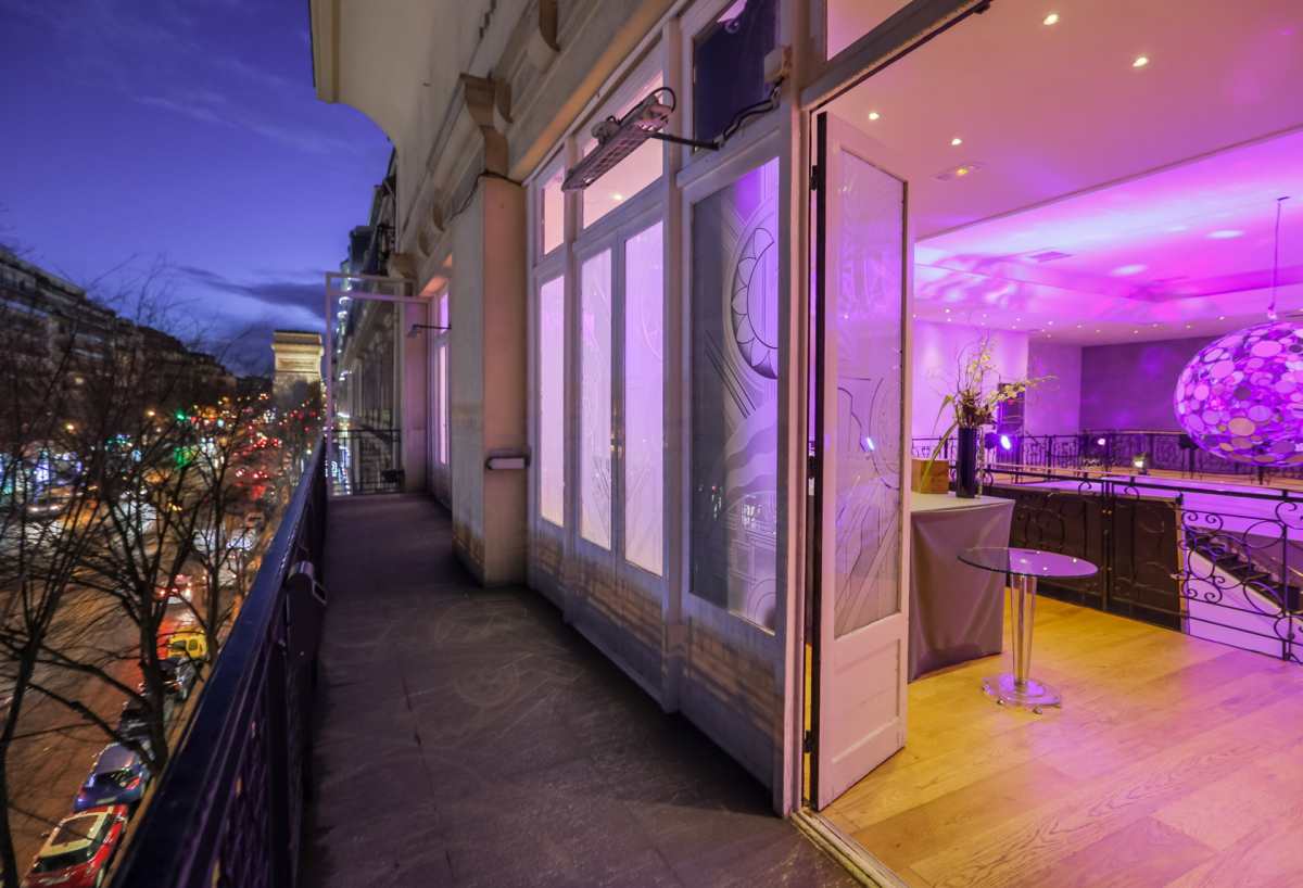 Ce nouvel espace de vie et de culture se décompose au gré des besoins entre le salon privé de 180m² au 1er étage, l’espace de réception principal de 300m² au centre de l’édifice et sa mezzanine de 200m² au balcon traversant, offrant une vue grandiose sur les lumières de l’avenue et l’Arc de Triomphe.